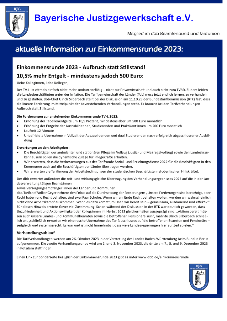 Liebe Kolleginnen, liebe Kollegen, am 26. Oktober 2023 hat die Einkommensrunde 2023 mit der Tarifgemeinschaft deutscher Länder (TdL) begonnen. In der Vertretung des Landes Baden-Württemberg in Berlin haben die Gewerkschaften ihre Forderungen vorgestellt und im Detail begründet. Die Arbeitgeberseite hat kein Angebot gemacht und die Gewerkschaftsforderungen stattdessen als zu teuer abgelehnt.