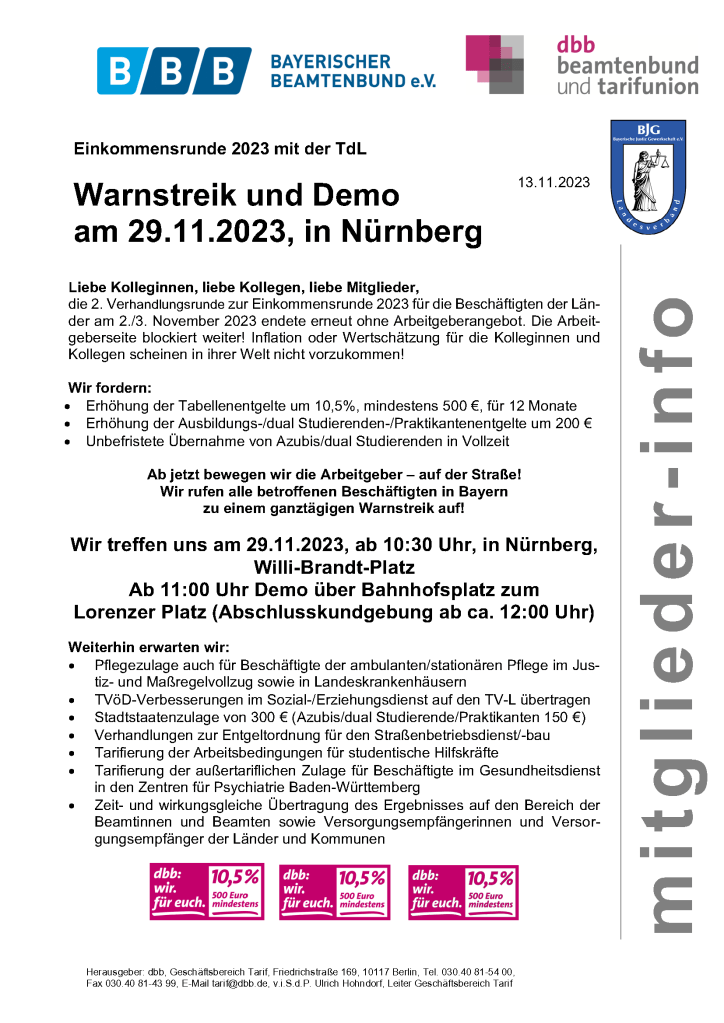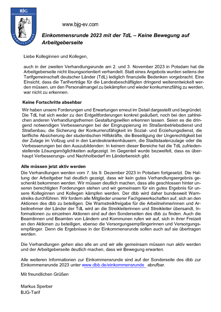 die neue Einkommensrunde mit der Tarifgemeinschaft deutscher Länder (TdL) wird Ende Oktober 2023 beginnen. In unseren Planungen müssen wir davon ausgehen, dass es ohne vorhergehende (Warn-)Streiks in der geplanten dritten Verhandlungsrunde ab dem 7. Dezember 2023 zu keinem Ergebnis kommen wird.